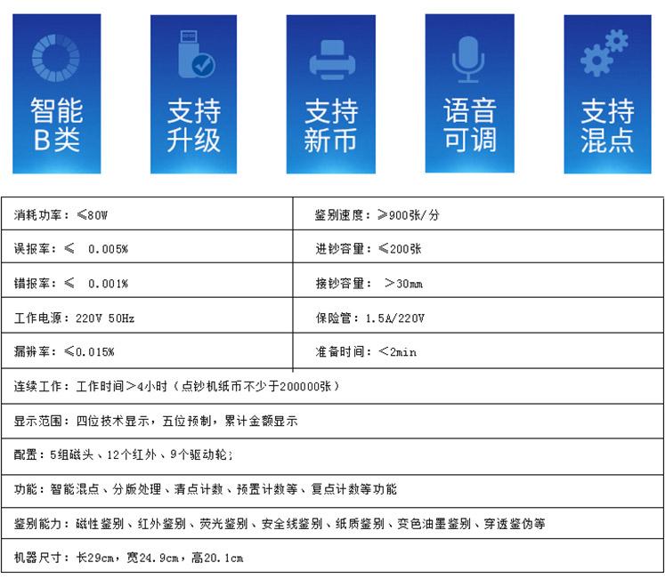 點鈔機類型: 插電式<br>屏幕數(shù)量: 雙屏<br>是否支持語音復讀: 支持復讀<br>適用場景: 商用收銀