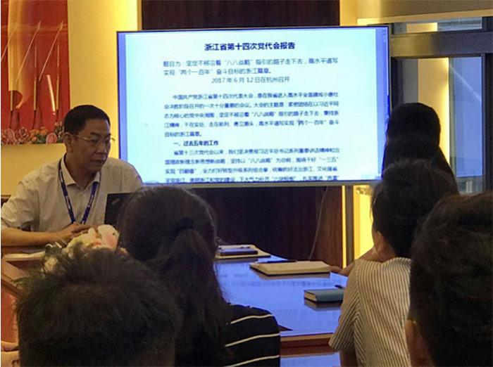 6月21日下午5時,浙江維融電子科技股份有限公司黨支部組織黨員、預備黨員、入黨積極分子學習“浙江省第十四次黨代會”報告精神,會議由支部書記魏宏枕主持。
