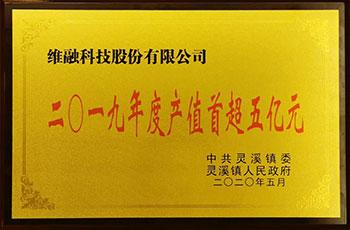 5月21日上午9時,蒼南縣靈溪鎮召開“激揚新時代溫州人精神大會暨當前重點工作攻堅推進大會”,表彰了2019年度先進集體和先進個人。? 維融科技股份有限公司榮獲“2019年度突出貢獻企業”、“2019年產值首超5億...