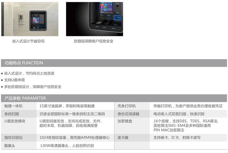 嵌入式設計,節約網點土地資源、支持U盾申領 、 多處防窺視設計,保障客戶信息安全